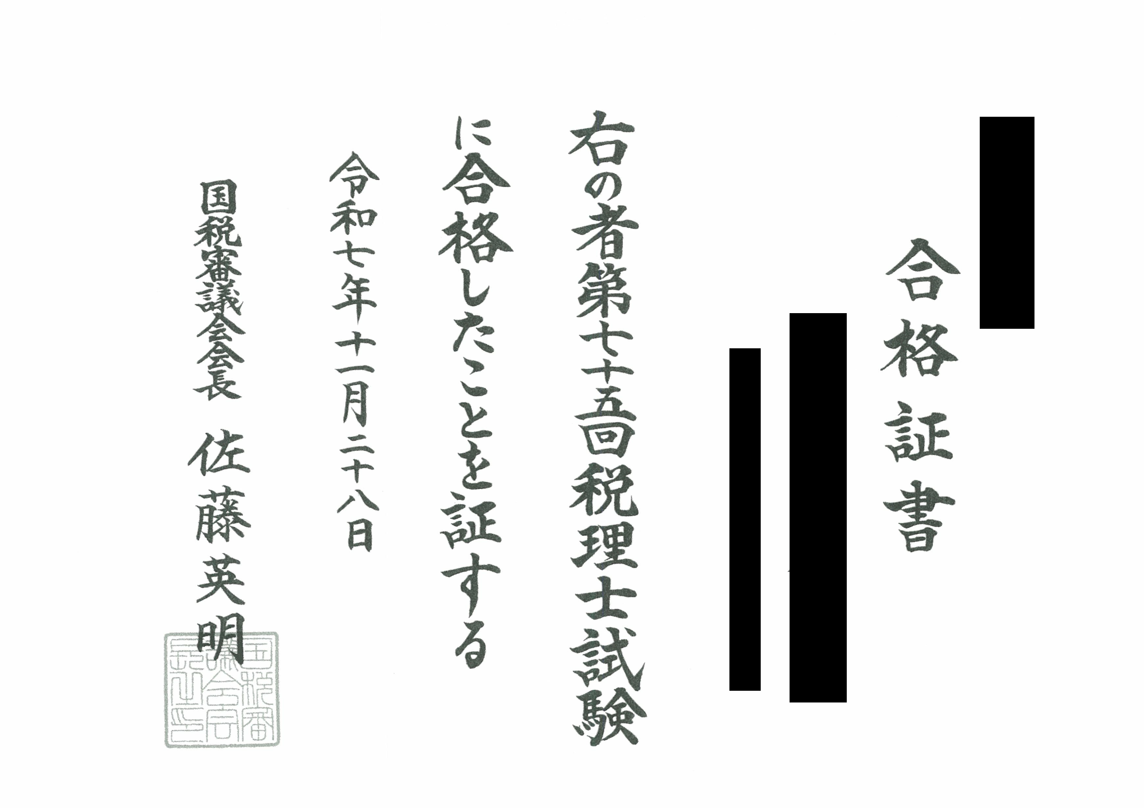 合格証書